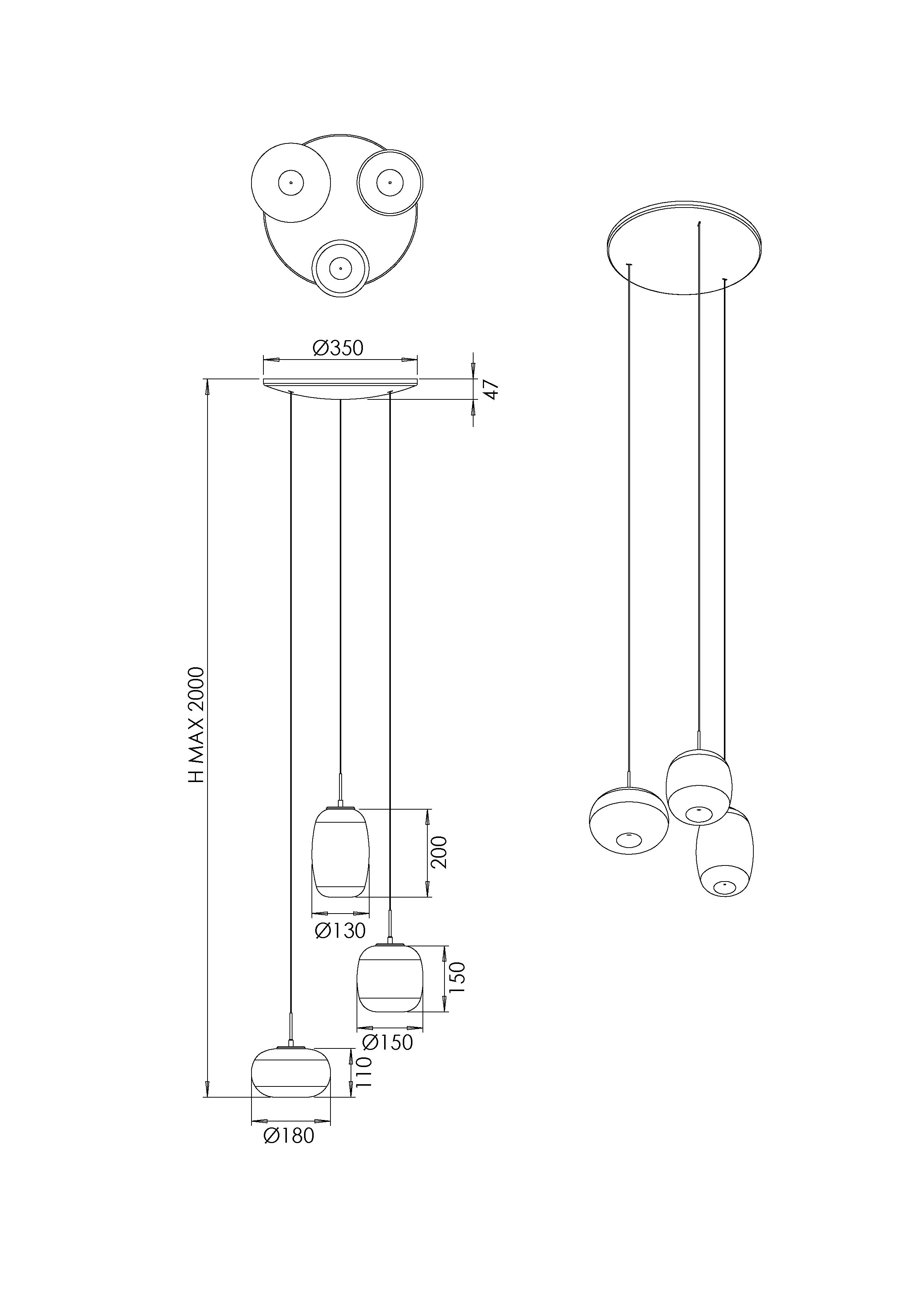 | Tipologia | Montatura sospensione tonda 3 luci |
