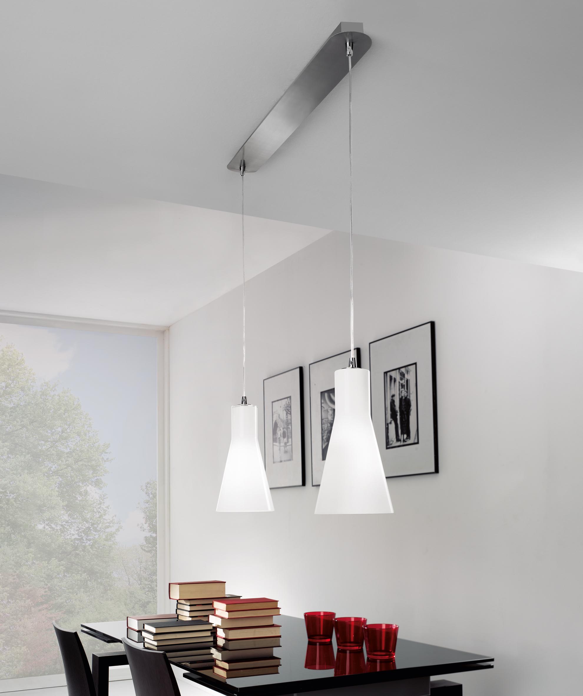 | Materiale | Struttura in metallo e vetro soffiato |