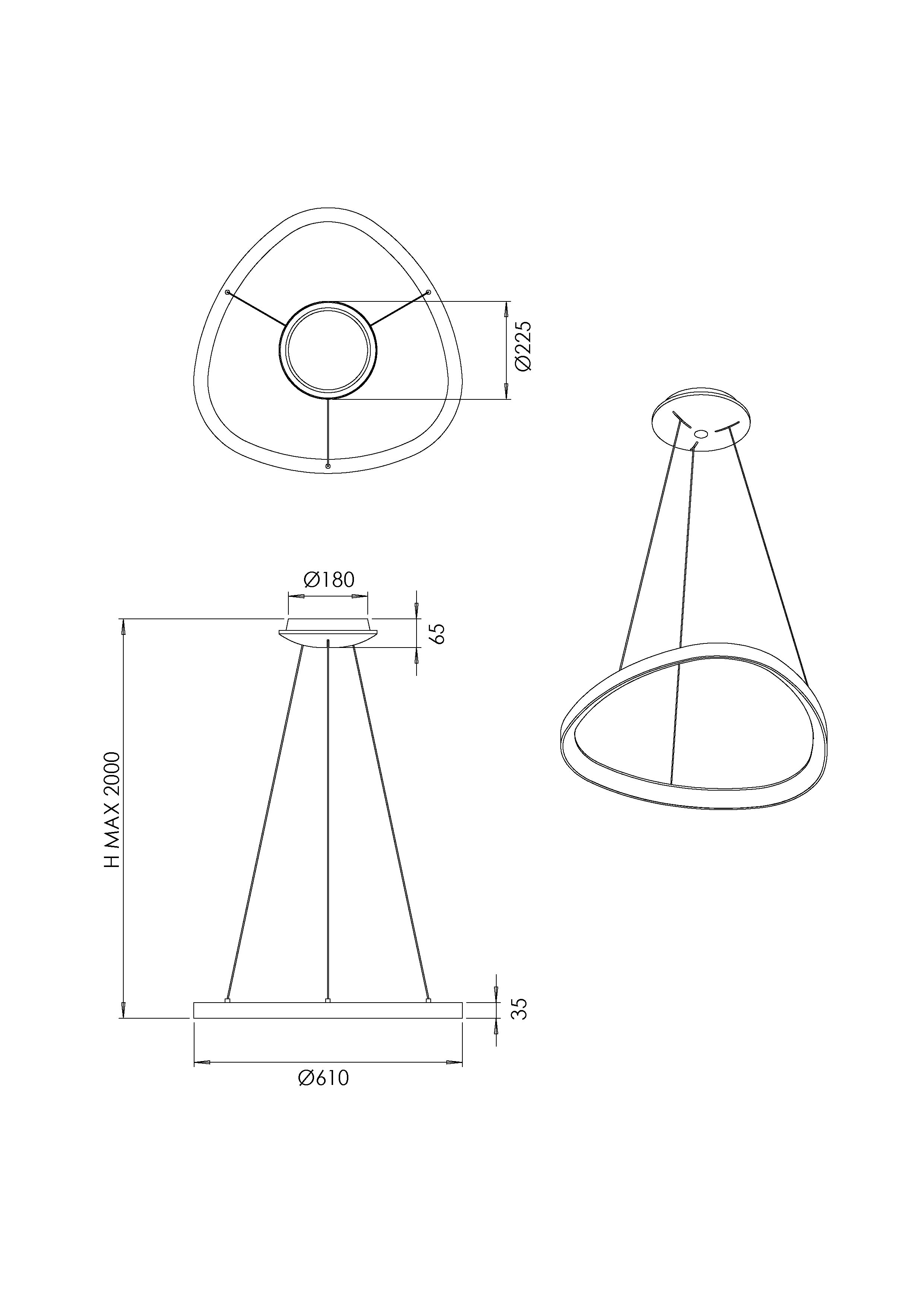 | Dimensioni della Lampada | MAX 2000mm Ø610mm - 1.84kg |