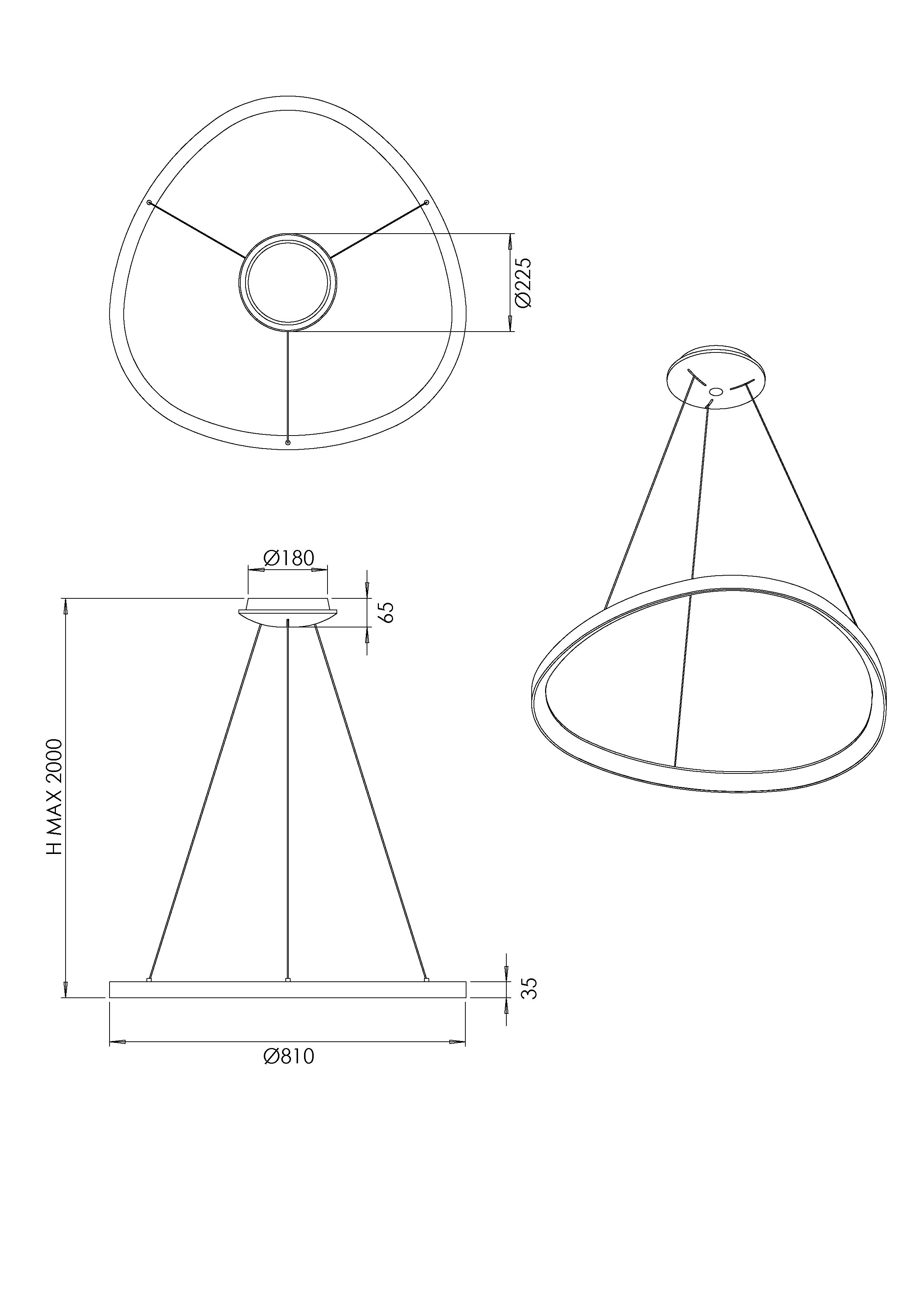 | Dimensioni della Lampada | MAX 2000mm Ø810mm - 2.28kg |